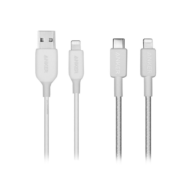 کابل USB-C به لایتنینگ انکر مدل A81B5H21 طول 0.9 متر به همراه کابل USB-A به لایتنینگ انکر مدل A8813H21 طول 1.8 متر