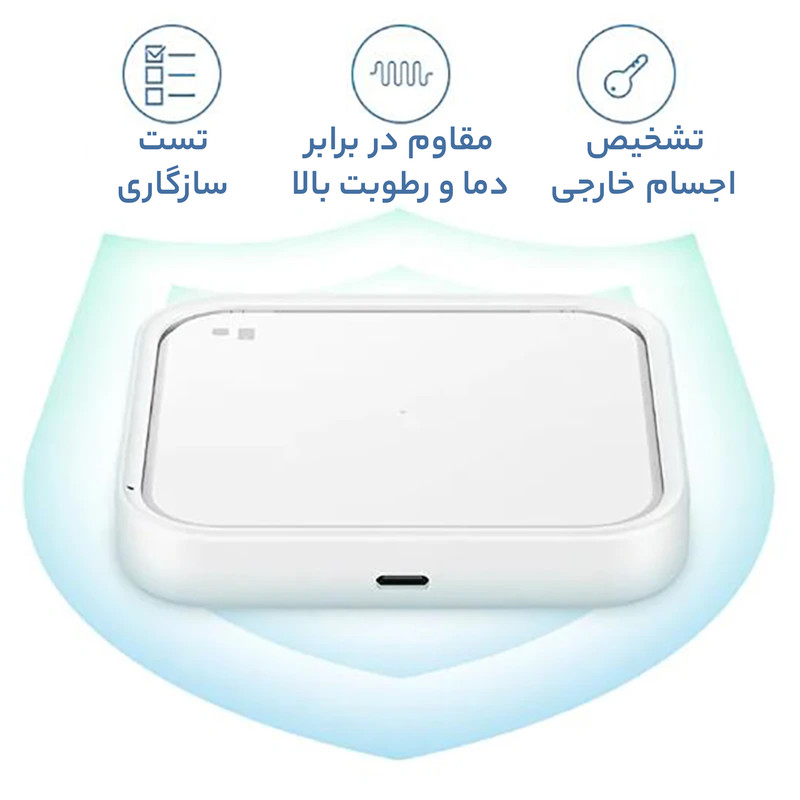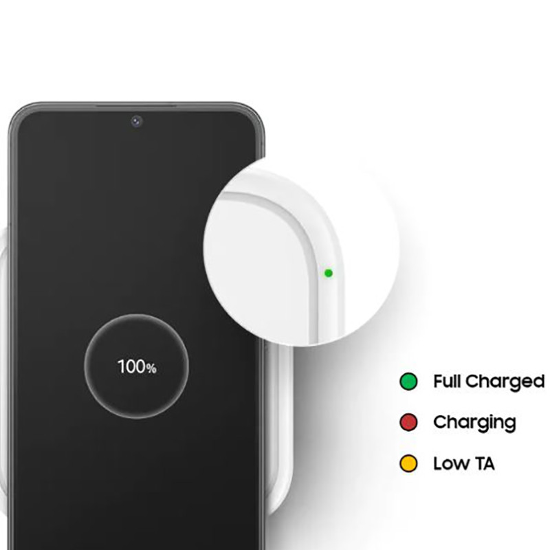 این شارژر بی سیم دارای توانایی شارژ بی سیم Super Fast با توان خروجی حداکثری 15 وات است و این امکان برای شارژ موبایل های گلکسی که از فناوری شارژ بی سیم پشتیبانی می کنند، مورد استفاده قرار می گیرد. این کالا توان بین 10 تا 15 وات را در اختیار کاربران گذاشته که برای دستگاه های متفاوت با توجه به توانی که برایشان سازگار است، متفاوت بوده و به شارژ دستگاه ها به صورت ایمن با سرعت های مختلفی می پردازد و بنا به گفته سامسونگ برای موبایل های آیفون هم می توان از این محصول بهره گرفت و آیفون های دارای فناوری شارژ بدون سیم را با توان 7.5 وات شارژ می کند. از این کالا برای هندزفری های سامسونگ سازگار با شارژ بی سیم هم در صورت همخوانی می توان استفاده کرد. سامسونگ در کنار این کالا یک آداپتور شارژ 25 وات (PD) برای تامین انرژی این محصول و یک کابل USB-C به USB-C را در اختیار شما می گذارد. در انتها باید گفت که شدت جریان و ولتاژ ورودی که برای شارژ این محصول استفاده می شود 9V/2.77A است و با وزن 100 گرمی و ابعاد 91x 91x 18.3 میلی متری که این شارژر بی سیم دارد به راحتی قابل حمل است.