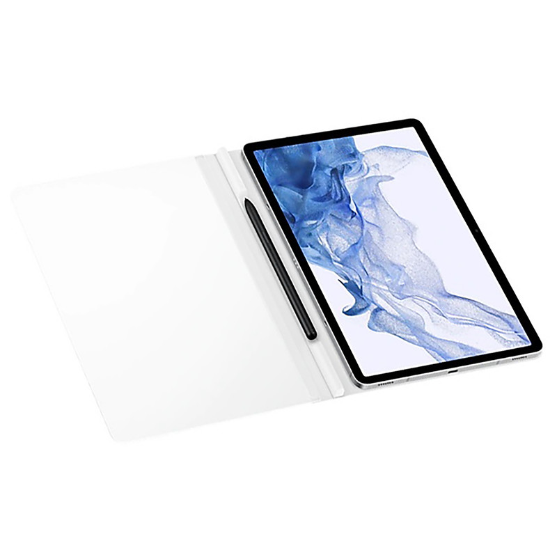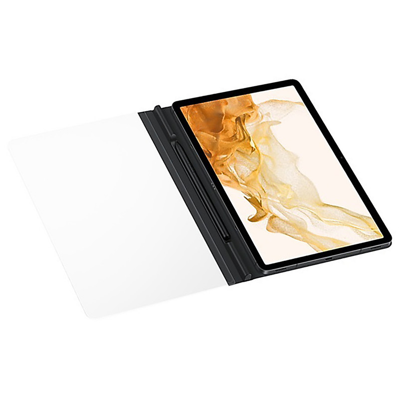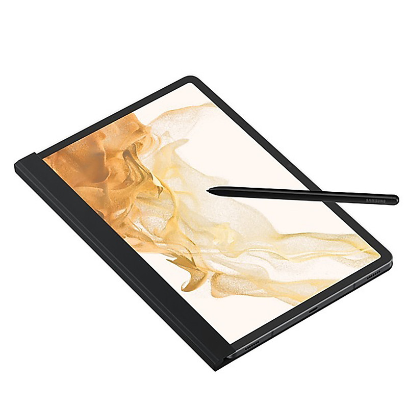 با کاور نوآورانه و اصلی Samsung Note View برای +Galaxy Tab S8+، Galaxy Tab S7 ، می خواهید روی یک تکه کاغذ بنویسید. به لطف ویژگی هوشمند آن، برای استفاده از قلم S خود مجبور نخواهید بود درب جلویی شفاف آن را باز کنید تا بتوانید از لک و خط و خش جلوگیری کنید. پوشش Note View به صورت مغناطیسی به تب Galaxy Tab شما متصل می شود و همچنین یک محفظه برای S Pen شما وجود دارد.