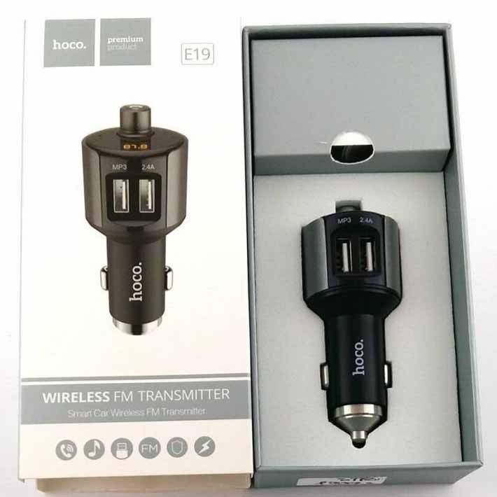 شارژر فندکی هوکو E19 امکان شارژ همزمان دو دستگاه را دارد.علاوه بر این دارای فن اوریFM TRansmitter است به اینگونه که از طریق بلوتوث به این دستگاه وصل شوید و موج شارژر فندکی را با موج ضبط ماشین در یک موج خالی یکی کنید وبتوانید صدای موبایلتان را به اسپیکرهای ماشین وصل کنید وحتی امکان مکالمه را نیز داشته باشید.