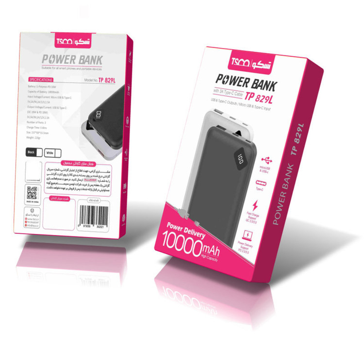 پاوربانک تسکو مدل TP 829L ظرفیت 10000 میلی آمپر ساعت