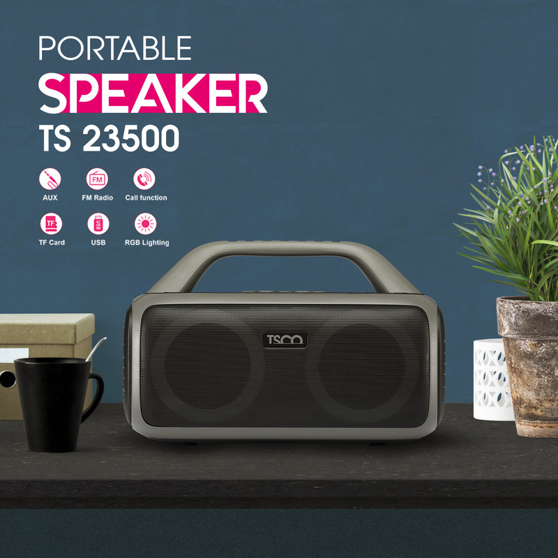 اسپیکر تسکو مدل TS 23500 که به تازگی به سبد کالاهای این برند اضافه شده در ابعاد 178x132x279 میلی متر و وزن 1.75 کیلوگرم به رنگ مشکی تعبیه شده، در طراحی اسپیکرهای آن چراغ های RGB زیبایی بکار رفته که جذابیت این محصول را دوچندان کرده است.
