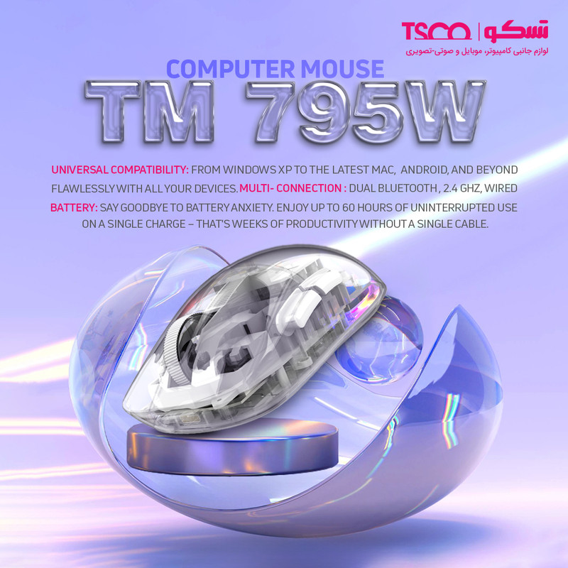 ماوس تسکو مدل TM 795 W فقط یک ماوس نیست؛ یک ابزار چندمنظوره، مدرن و حرفهایست که برای دنیای کاری و گیمینگ امروز طراحی شده. ترکیب طراحی شفاف، ساختار ارگونومیک و امکانات چنداتصاله باعث شده این مدل نهتنها در نگاه اول چشمنواز باشد، بلکه در عملکرد هم فراتر از انتظار ظاهر شود.