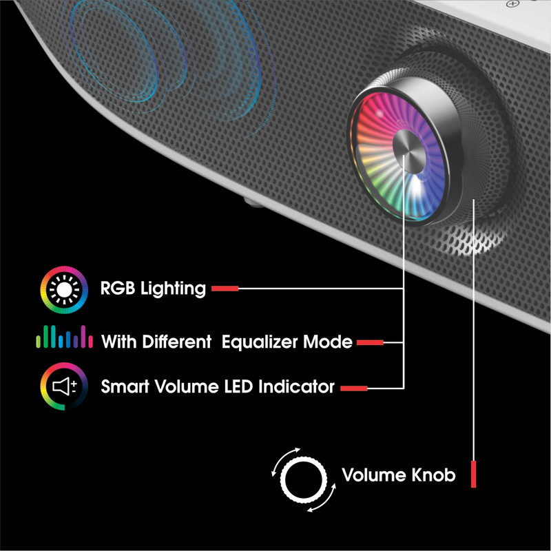 ساندبار GS 23369 دارای 4 درایور اسپیکر با توان خروجی کلی 20 وات (دو عدد 6 وات و دو عدد 4 وات) است که صدایی شفاف، قدرتمند و متعادل ارائه میدهد. این محصول دارای سه حالت اکولایزر (Gaming، Movie و Music) است که امکان تنظیم صدا بر اساس محتوای در حال پخش را فراهم میکند.