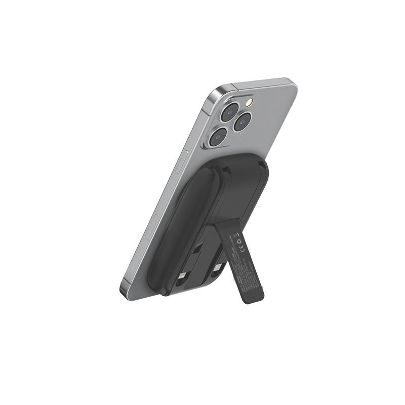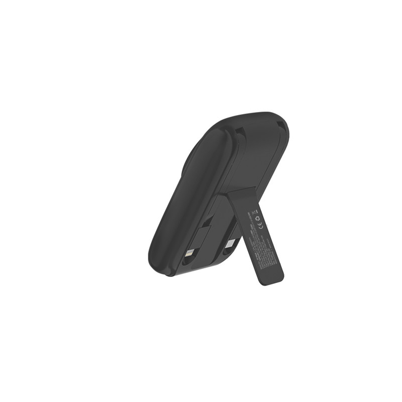 بخش کناری دستگاه یک کابل تعبیه شده Type-C و Lightning را درون خود جای داده که استفاده از این کابلها مستقیماً در دستگاه به طراحی بسیار جمعوجور کمک کرده و از نیاز بههمراهداشتن کابلهای جانبی جلوگیری میکند. همچنین در پشت دستگاه پایهای تاشو طراحی شده است که بهعنوان یک استند یا هولدر هنگام مشاهده فیلم یا کار با گوشی به کاربر کمک میکند.