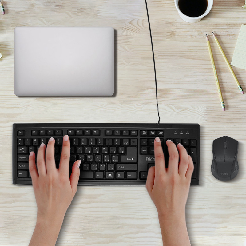 ماوس و کیبورد را می توانیم جز پرکاربردترین لوازم جانبی کامپیوتر بنامیم که برای ورود اطلاعات و فرمان ها به رایانه مورد استفاده قرار می گیرد. ماوس ها و کیبورد ها در طراحی های مختلفی طراحی و تولید می شوند که که با توجه به نوع استفاده و میزان بودجه خود می توانید دست به انتخاب بزنید. شرکت تسکو که مدتی است به عرضه لوازم جانبی رایانه می پردازد اینبار محصول جدیدی تحت عنوان TKM 8050 را روانه بازار کرده است. این محصول جدید شرکت تسکو در واقع یک پک متشکل از ماوس و کیبورد است که از طریق درگاه USB به رایانه شما متصل می شود. کیبورد موجود در این پک از 104 کلید بسیار نرم و راحت دارای برچسب چاپ فارسی، تشکیل شده است که است که هنگام استفاده بلند مدت از آن احساس خستگی نخواهید کرد. ماوس موجود در پک محصول TKM 8050 از نوع اپتیکال بوده که از طراحی ارگونومیکی بهره می برد. روی این ماوس یک کلید برای تغییر میزان دقت آن به 1000 و 1600 DPI دیده می شود که در صورت نیاز می توانید مورد استفاده قرار دهید. طراحی ساده این ماوس باعث شده که بتوانید با هر دو دست از آن استفاده کنید.