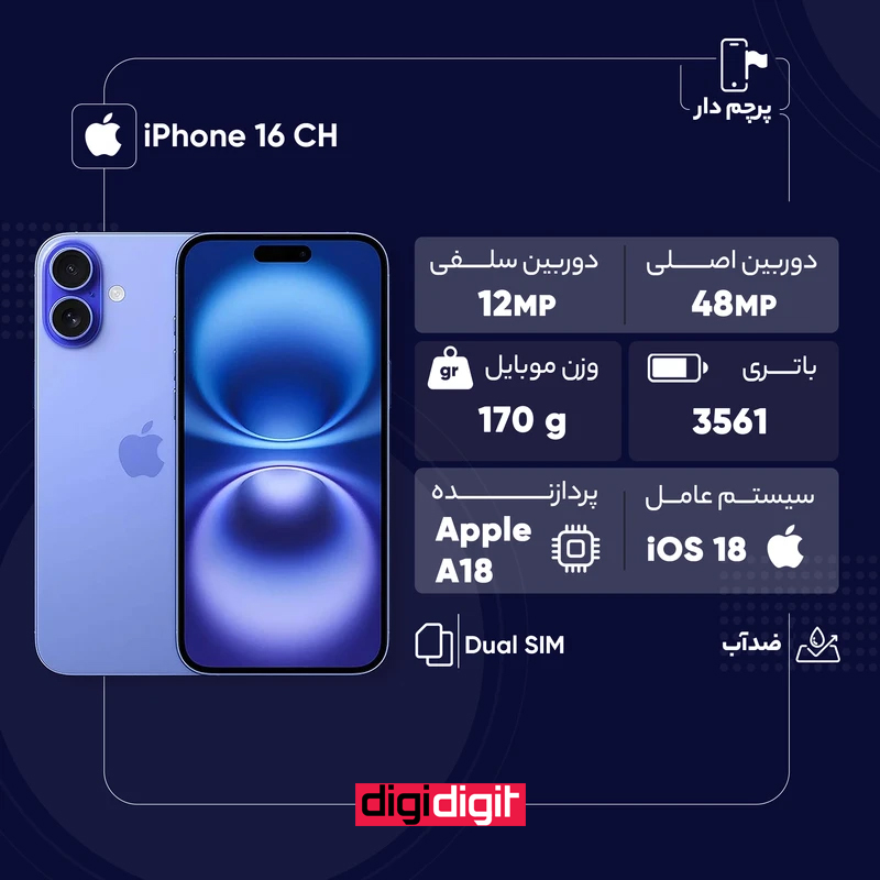 ویژگیهای کلیدی : دارای گواهی IP۶۸ و ضد آب تا عمق ۶متری آب به مدت ۳۰ دقیقه / امکان ارتقا سیستم عامل به iOS نسخه ۱۸.۱ / مجهز به سیستم ارتباطی Ultra Wideband / مجهز به سیستم پیام اضطراری SOS و مکان یابی توسط ماهواره
