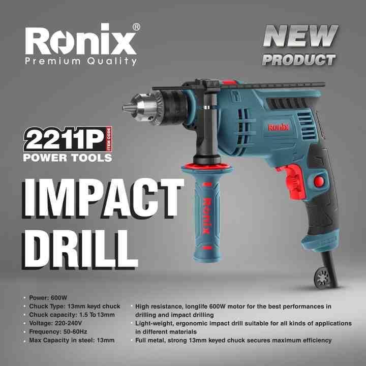در دریلهای چکشی علاوهبر چرخش مته میتوان از قابلیت چکشی یا ضربهای آن هنگام سوراخکاری استفاده کرد. دریل چکشی مدل 2211P، تنها یک نمونه از مجموعه دریلهای چکشی متنوع و قدرتمند رونیکس است که با موتور صنعتی 600 وات کار میکند و آرمیچر و بالشتکهای صنعتی آن مطابق با معتبرترین استانداردهای دنیا ساخته شدهاند.