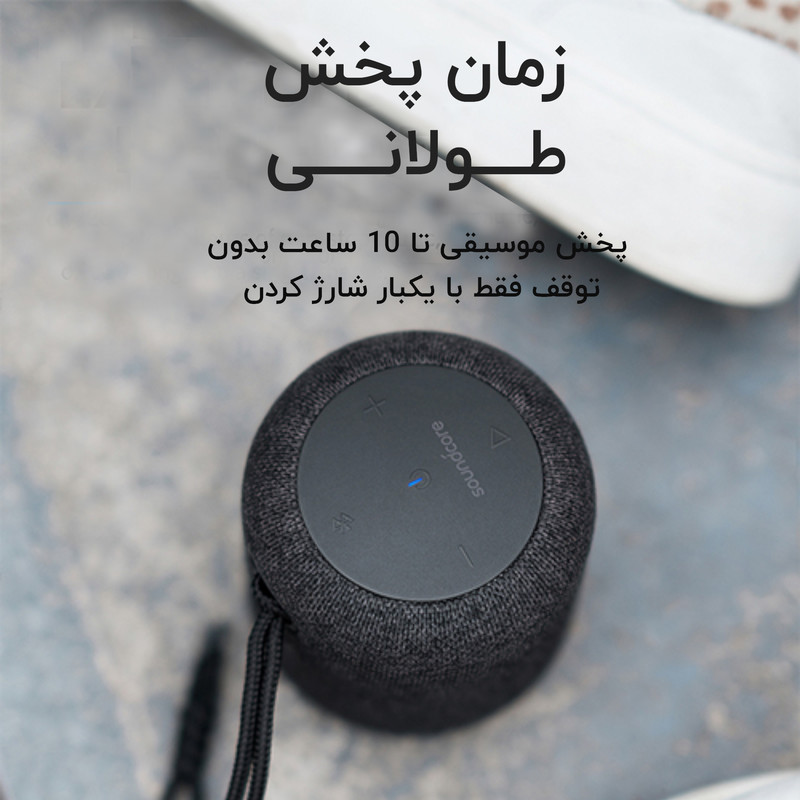 اسپیکر بلوتوث Anker Motion Q 360 یک ابزار برای پخش فایلهای صوتی است. به دلیل طراحی استوانهای شکل اسپیکر Motion Q 360 صدا در تمام جهات به صورت 360 درجه پخش میشود و با قابلیت ضد آب و غیر قابل نفوذ گرد و غبار به درون آن امکان استفاده در مکانهای مختلف را فراهم میکند. این اسپیکر بلوتوث دارای یک بند مچی است تا بهراحتی آن را آویزان کنید و در دستتان بگیرید. اسپیکر Motion Q 360 انکر همراه شما در ماجراهای زندگی است. درایور دوگانه منفعل Motion Q به طور منظم در اطراف اتاق، صدای خیره کننده 360 درجه را پخش میکند. در واقع در هر نقطه ای از اتاق که باشید میتوانید از شنیدن صدای موسیقی لذت ببرید. Motion Q با بهره گیری از تکنولوژی BassUpTM منحصر به فرد، صدایی عمیق با وضوح نفس گیر دارد. پردازنده سیگنال دیجیتال سفارشی سازه شده برای اولین بار تجزیه و تحلیل، و سپس فرکانسهای باس موسیقی خود را در زمان واقعی افزایش میدهد. سپس این سیگنال صوتی از طریق درایور نئومیوم پیشرفته به صدای تشدیدشده، تبدیل میشود. پوسته ضد آب IPX7 یک مانع غیر قابل نفوذ در اطراف اجزای داخلی اسپیکر انکر ایجاد می کند، این لایه، اسپیکر را از مایعات مخرب و آسیب های احتمالی محافظت می کند وصدای اسپیکر انکر Motion Q هیچگاه در زندگی شما متوقف نمی شود. Anker of Soundcore ما را قادر می سازد تا یک باتری لیتیوم یونی با کارایی بالا با سیستم مدیریت انرژی پیشرفته Anker ترکیب کنیم. این ویژگی برای بهینه سازی مصرف انرژی طراحی شده است، که اجازه میدهد Motion Q برای مدت طولانی تا حداکثر 10 ساعت موسیقی با هر بار شارژ پخش کند. شما میتوانید دو اسپیکر انکر Motion Q را به هم متصل کرده و حجم صدای موسیقی را دو برابر کنید. اسپیکر انکر Motion Qیک اسپیکر پرتابل است و هر جایی که بخواهید میتوانید آن را همراهتان ببرید. این اسپیکر وزن کمی دارد و دارای یک بند نگهدارنده جهت آویزان کردن دور مچ دست یا قلاب کردن به هرچیزی در هر جایی است.