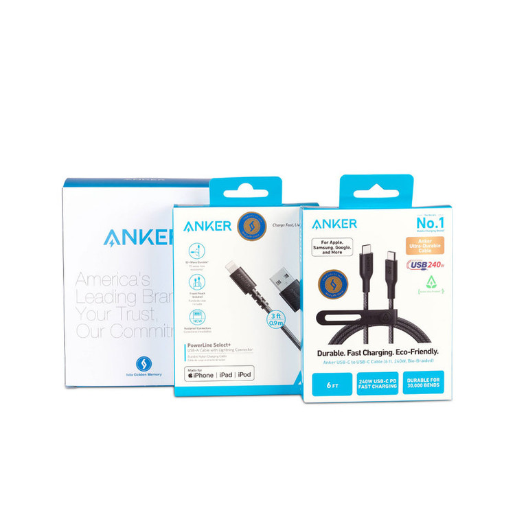 کابل USB-C انکر مدل A80F6H11 طول 1.8 متر به همراه کابل USB-A به لایتنینگ انکر مدل A8012H12 طول 0.9 متر