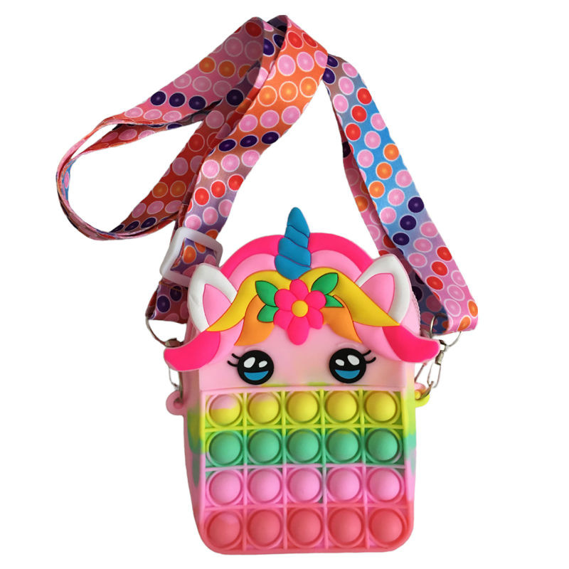 کیف سیلیکونی رودوشی طرح یونیکورن محصولی با کیفیت و مرغوب وارداتی می باشد . این محصول مناسب هدیه دادن به کودکان است.به خاطر سیلیکون با کیفیت این کیف ماندارگاری بالا و قابل شست و شو است. اندازه آن مناسب کارت عابر بانک، هندزفری و شارژر و کالاهای کوچک می باشد. گوشی های بزرگ در آن جا نمیگیرد . فقط گوشی های مینی مناسب این کیف می باشد. بند همراه کیف بسیار فانتزی و طرح دار می باشد. این محصول ترندی تکمیل کننده استایل خاص کودکان می باشد.