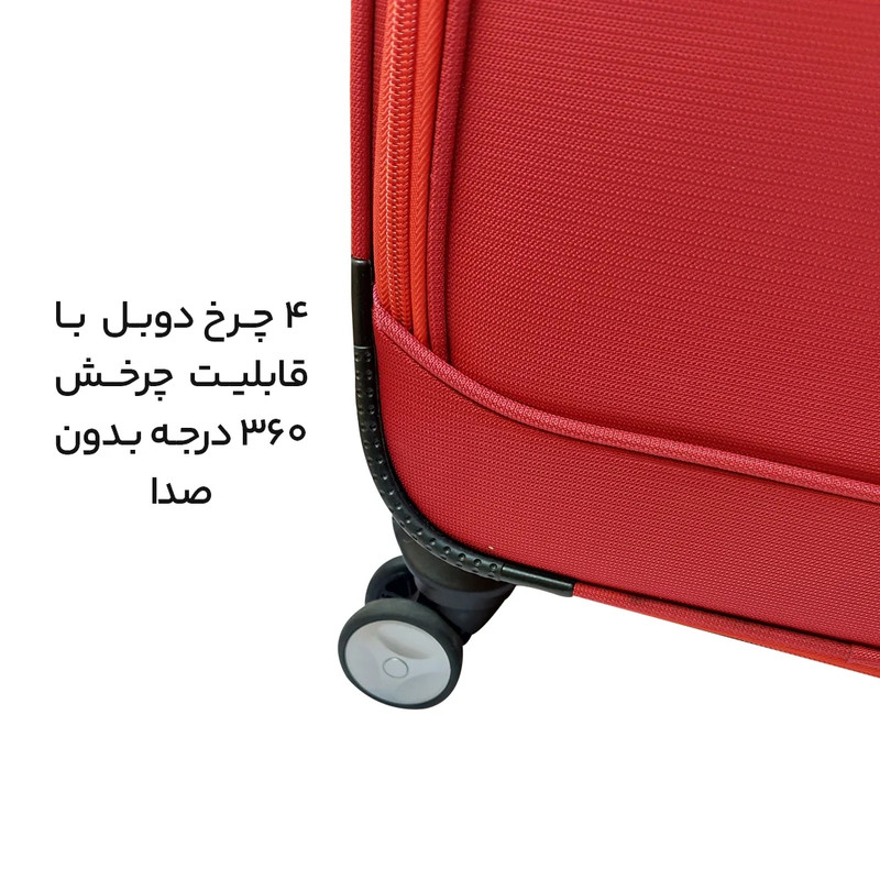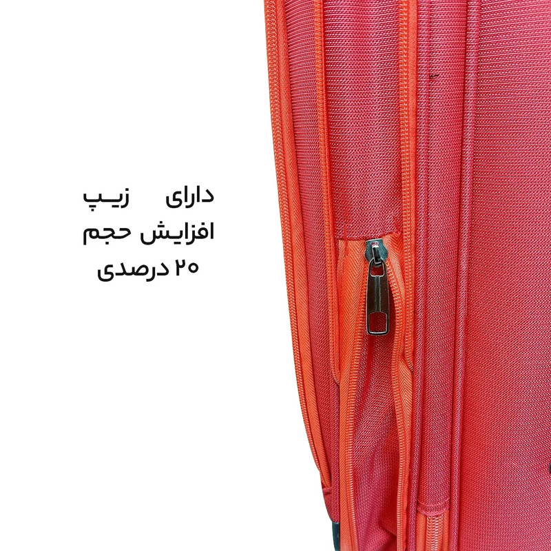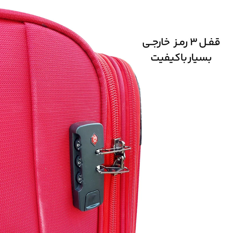 چمدان یکی از ملزومات ضروری هر سفری است. چمدان مدل B40326S سایز کوچک از جنس برزنت ضد آب و باکیفیت تولید شده است. قفل تعبیه شده آن از نوع 3 رمز بوده و با توجه به دوبل بودن زیپ محفظه اصلی، ضد سرقت بوده و از چمدان به خوبی محافظت می نماید. همچنین یک زیپ افزایش حجم نیز دارد که حجم چمدان را به اندازه 20 درصد افزایش می دهد. به همراه چمدان یک کاور باران نیز ارائه می شود که در روزهای بارانی و برای جلوگیری از خیس و کثیف شدن بسیار کاربرد دارد. این چمدان یک محفظه اصلی بزرگ دارد که با وجود بند امکان نظم دهی بهتری به لباس ها می دهد. درون این محفظه یک محفظه مجزای کوچک برای لباس های خیس وجود دارد. همچنین دو محفظه بیرونی برای دسترسی سریعتر به لوازم مورد نیاز وجود دارد. استراکچر ان مستحکم بوده و کیفیت بالایی دارد. دارای 4 چرخ دوبل و بی صدا با قابلیت چرخش 360 درجه است که حمل چمدان را آسان می کند. یک دسته ترولی سه حالته برای حمل و یک دستگیره برای بلند کردن چمدان دارد.