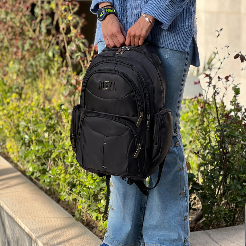 دارای یک محفظه مجزا در داخل قسمت اصلی جهت قرار دادن وسایل و لپتاپ دارای دو جیب در دو طرف دارای یک محفظه زیپی میانی دارای دو جیب در قسمت جلویی