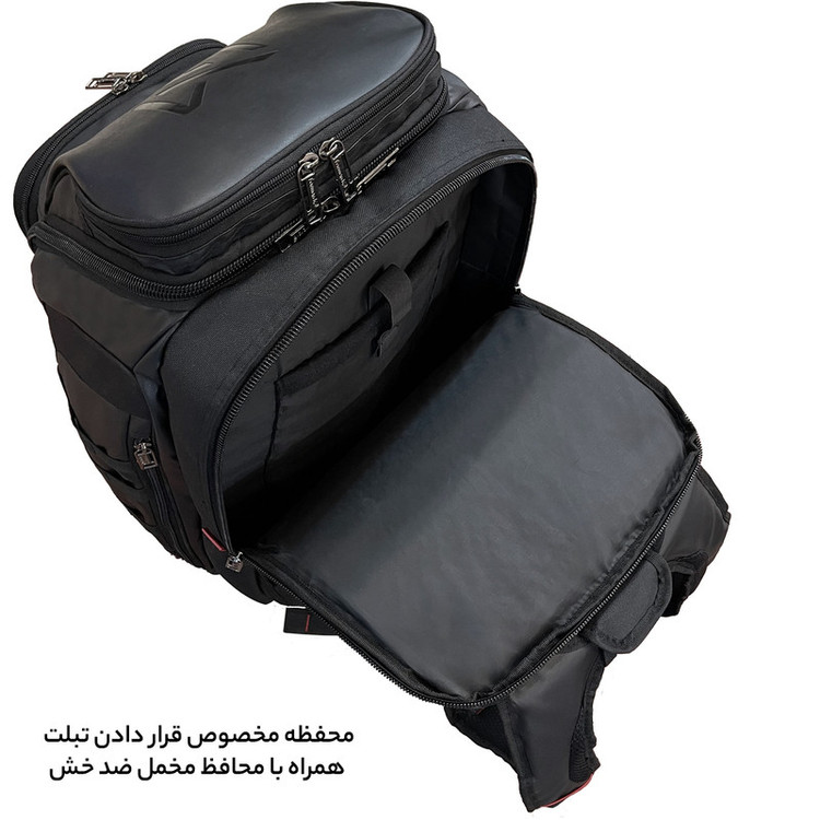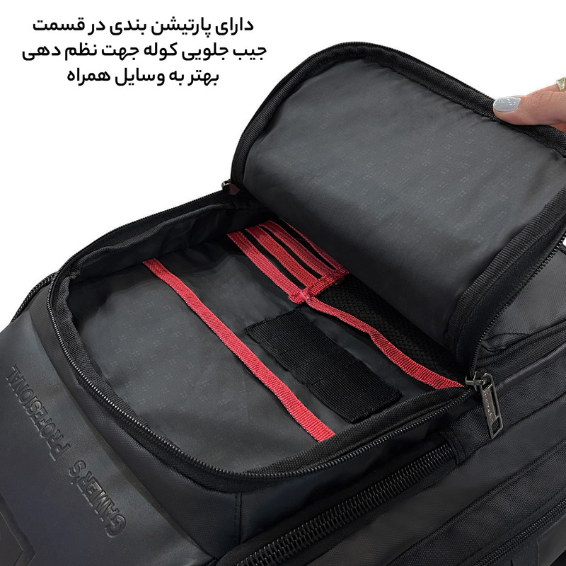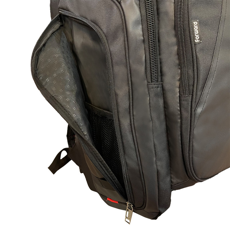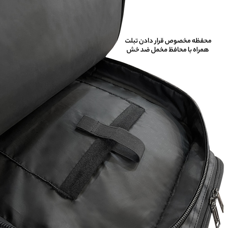 جیب بیرونی , جیب خودکار , جیب داخلی , دارای یک محفظه اصلی , محفظه نگهداری اسناد , محفظه نگهداری لپتاپ , آلبوم کارت شناسایی , جیب سکه , جیب سیم کارت , جیب طولی اسکناس , جیب کارت اعتباری , جیب کارت ویزیت , محفظه نگهداری پاسپورت , محفظه نگهداری کلید