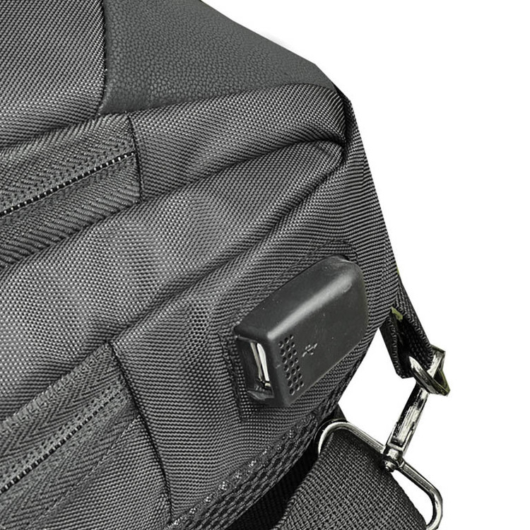دارای یک محفظه اصلی , جیب بیرونی , جیب داخلی , محفظه کابل و شارژر , محفظه نگهداری کلید , محفظه نگهداری پاسپورت , جیب خودکار