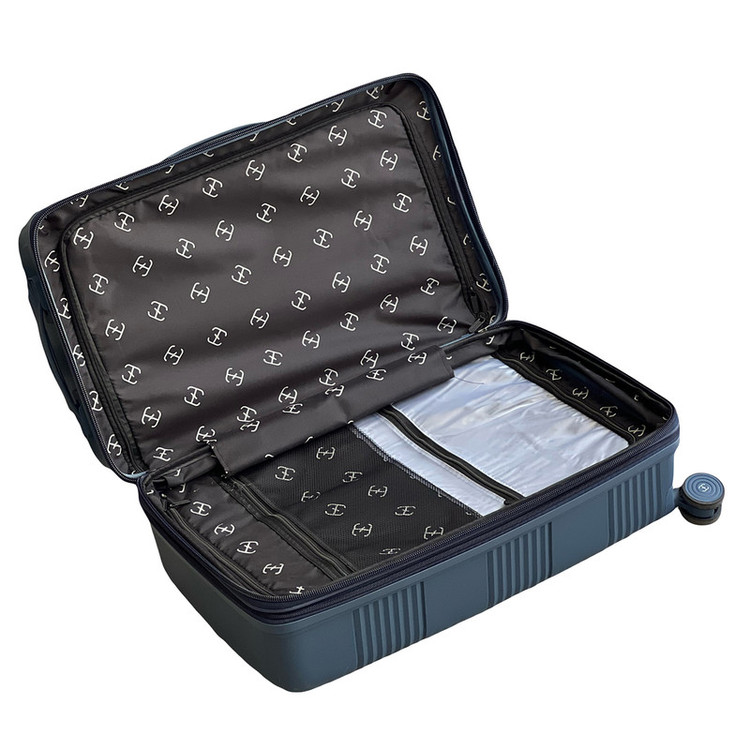 طراحی هوشمندانه این چمدان شامل محفظههای متعدد و بند داخلی برای نظمدهی به وسایل و جلوگیری از جابجایی آنها در طول سفر است.