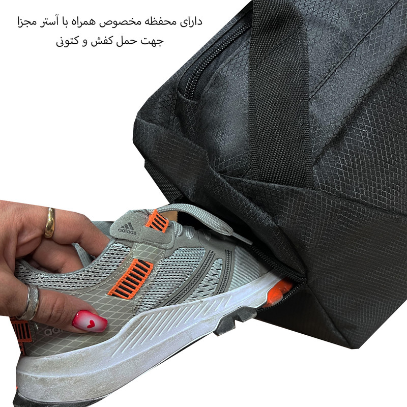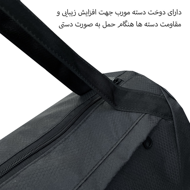دارای دو دسته مورب همراه با دوخت کمکی جهت افزایش مقاومت دسته ها و سهولت در حمل هنگام حمل به صورت دستی دارای بند بلند قابل تنظیم و قابل جدا شدن جهت حمل به صورت دوشی و مورب