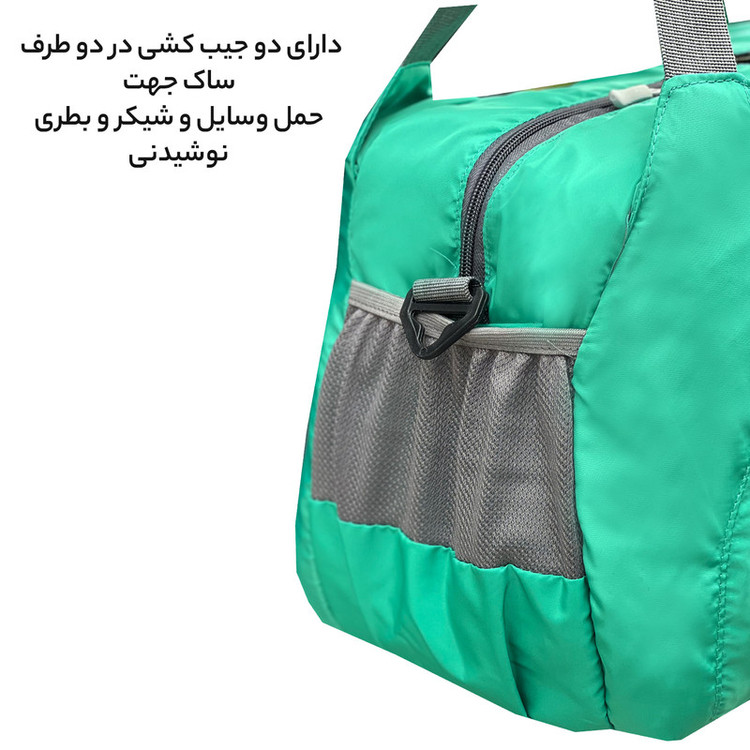 دارای دو دسته از جنس نوار الگانس ضخیم همراه با پوشش چسبی دوبل جهت حمل آسان تر به صورت دستی دارای یک بند بلند قابل جدا شدن و قابل تنظیم جهت حمل به صورت دوشی