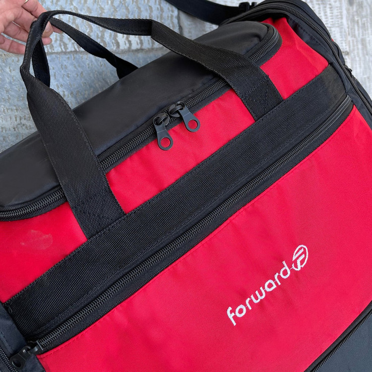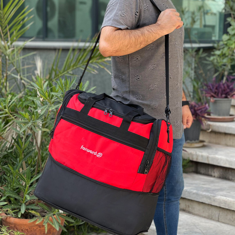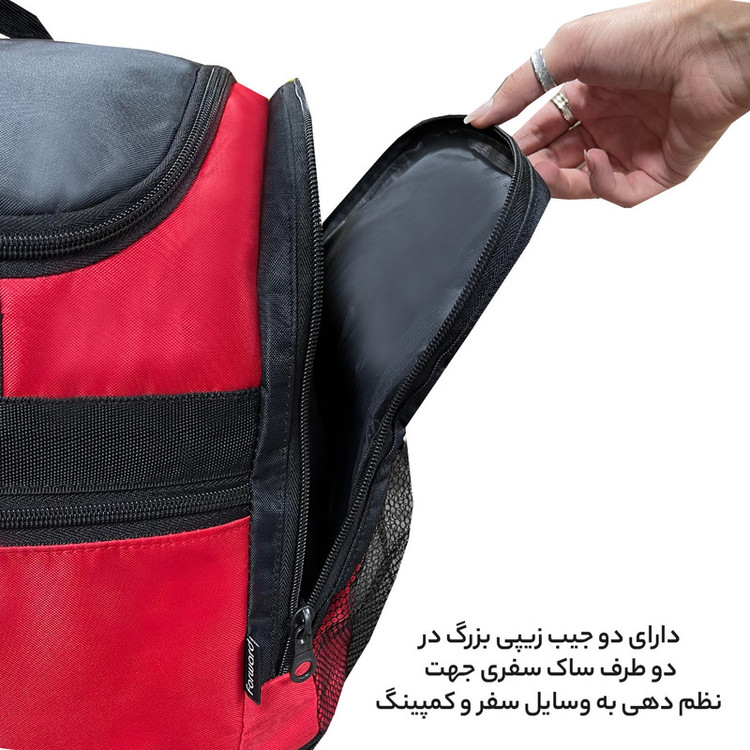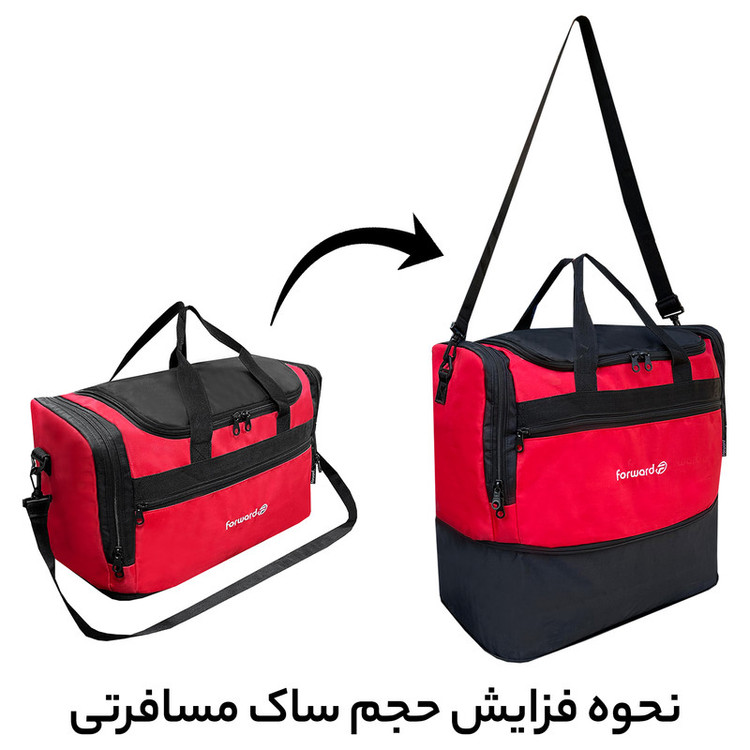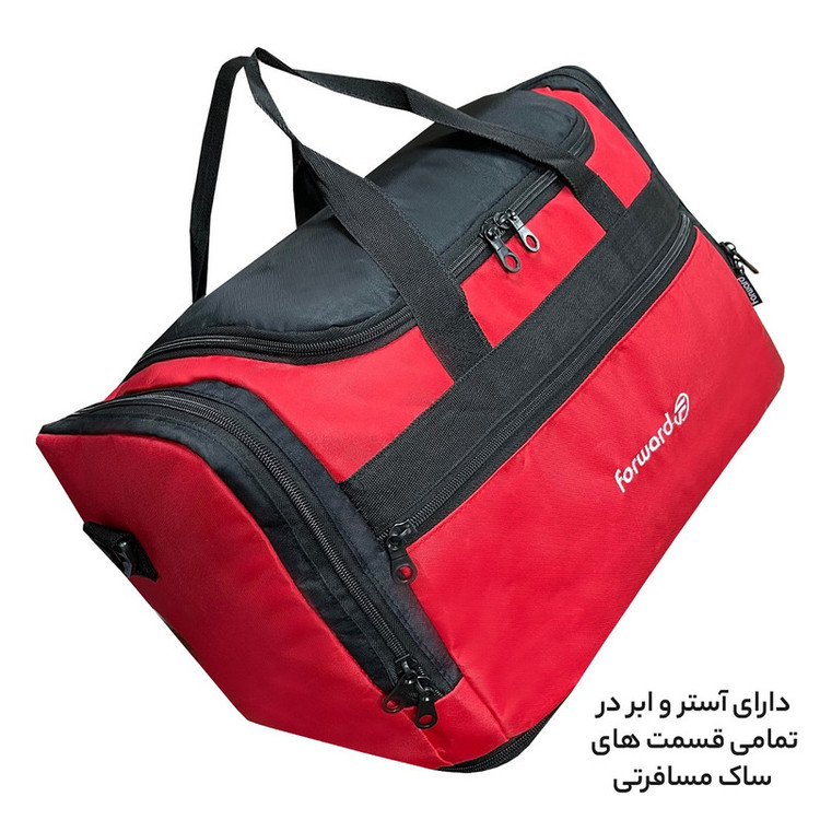 دارای یک بند بلند قابل تنظیم و قابل جدا شدن جهت حمل به صورت دوشی دارای ابر و آستر داخلی در تمامی قسمت های ساک دارای 5 عدد پایه استوک در قسمت کف ساک سفری جهت افزایش ایستایی و مقاومت ساک دارای جنس بدنه ضد آب و قابل شست و شو