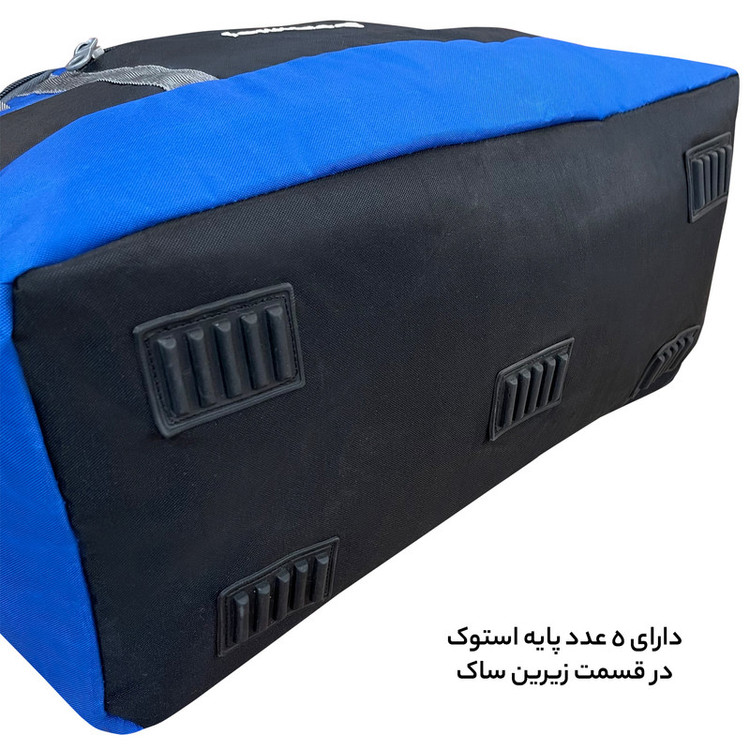 دارای پایه استوک در قسمت زیرین ساک دارای جنس بدنه برزنت ضد آب و قابل شست و شو دارای ابر و آستر در سرتا سر قسمت داخلی ساک