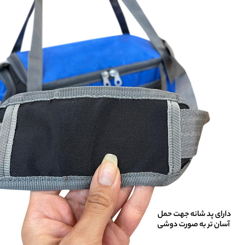 دارای دسته جهت حمل به صورت دستی دارای یک بند بلند قابل تنظیم و قابل جدا شدن