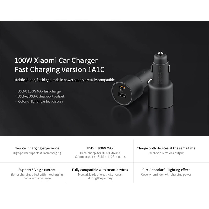 شارژر فندکی 100 وات شیائومی مدل CC07ZM 1A1C