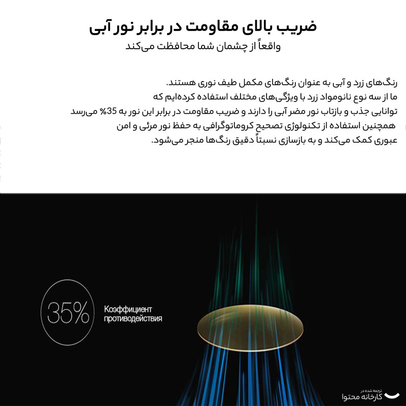 مشخصات: قابلیت فیلتر کردن اشعه نور آبی تا 60 درصد