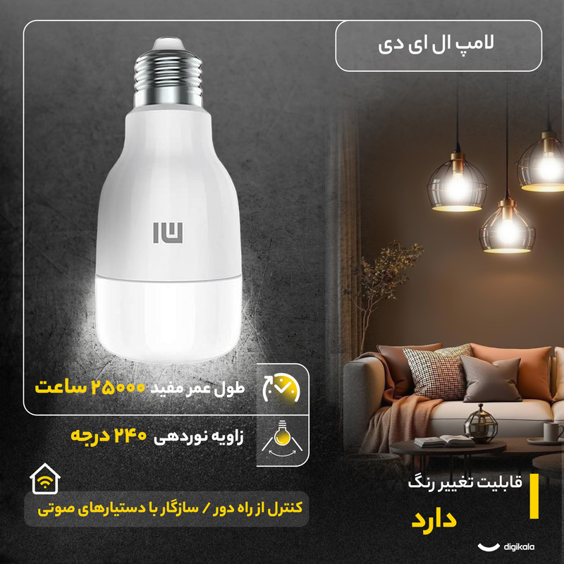 این لامپ LED با چیپست هوشمندی که دارد می تواند با استفاده از وای فای از طریق تلفن های هوشمند کنترل شده و میزان نور و رنگ آن را از طریق اپلیکیشن رسمی شیائومی مدیریت کرد. نور ساطع شده از این محصول در حالت پیشفرض بی رنگ، شفاف بوده و با توجه به قابلیت کنترل نور و سطح روشنایی 950 لومن می تواند در مصارف مختلف از جمله مطالعه، چراغ خواب، نور اتاق و… استفاده شود.