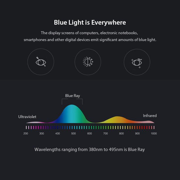 آیا با مشکلات مربوط به خوابیدن روبرو هستید؟ آیا از درد چشمان و سردرد هنگام تماشای صفحه نمایش کامیپوتر و تلویزیون رنج می برید؟ قرار گرفتن در معرض نور آفتاب مضر، کار با تلفن های همراه، تبلت، کامپیوتر، تلویزیون و چراغ های LED، باعث ایجاد بد خوابی و آسیب های دائمی به چشم می شوند. نور "آبی" ساطع شده از وسایل الکترونیکی مانند تلفن های همراه ، صفحه نمایش ، LED ، فلورسنت و غیره باعث خستگی چشم ها می شود.