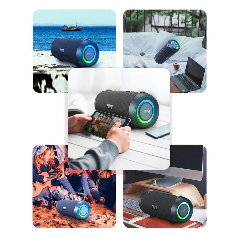 برند MIFA از تولید کنندگان مطرح صدا و صوت برای استفاده در فضای باز است. این برند دارای شبکه فروش گستردهای در بیش از 50 کشور جهان شامل ایالات متحده، آلمان، اسپانیا، دانمارک و دیگر کشورها است. مفهوم محصولات شکرت MIFA از ایالت کالیفرنیا ایالات متحده امریکا گرفته شده است؛ جایی که آفتاب گرم، ساحل، فستیوالهای موسیقی و گردهماییها و مهمانیها جلوه زیادی دارند.شرکت MIFA همیشه در طراحی و تولید محصولات خود از شعار «صدای روح» پیروی کرده است و مراحل سنگین و پیاپی رفع اشکال را برای تمامی محصولاتش در نظر گرفته است.این شرکت با به کارگیری تکنیکهای آنالیزی PureSoundTM برای تمامی محصولات خود شبیه سازی شنوایی انسان را به حداکثر رسانده و تجربه گوش دادن به موسیقی بسیار باکیفیت را برای کاربرانش به ارمغان آورده است.اسپیکر MIFA A90 Party Bluetooth یکی از پرطرفدارترین محصولات این کمپانی شناخته شده آمریکایی است که به صورت کاملا حرفهای و ماهرانه، بدون هیچ گونه عیب و نقصی وارد بازار شده است. این دستگاه با نور پردازی منحصر به فرد خود و صدای قدرتمند و باس عمیق، برای هر مهمانی فضا جدیدی به ارمغان میآورد.اسپیکر MIFA A90 Party Bluetooth یکی از محصولات حرفهای و قدرتمند است که تا به امروز طرفداران زیادی داشته و جزو پر فروشترین محصولات کمپانی MIFA به شمار میرود.