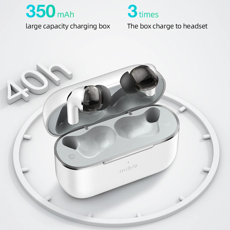 ابعاد: 45x62x24 میلیمتر / شارژدهی تا 40 ساعت / توام: 10mW / مقاومت در برابر آب / میکروفون دارای قابلیت نویز کنسلینگ / تاخیر ورودی پایین / ظرفیت باتری محفظه شارژر: 350 میلی آمپر ساعت
