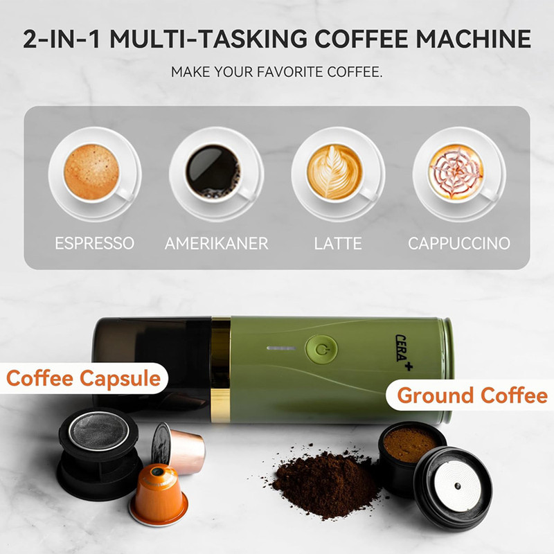 این اسپرسوساز قابل حمل مدل PCM03 با می تواند با فشار ۲۰ بار، کپسول/ قهوه آسیاب شده را استخراج کند و اسپرسو را با طعم و عطر عالی تضمین کند. همانطور که اشاره کردیم، امکان استفاده از کپسول های قهوه نیز مزیتی است که این دستگاه را از دیگر اسپرسو ساز ها متمایز میکند، زیرا با این امکان، میتوانید به سرعت و به راحتی قهوهی مورد نظر خود را تهیه کنید. ظرفیت مخزن اسپرسوساز مدل سرا پلاس 80 میلی لیتر بوده و با این ظرفیت مناسب، به شما امکان میدهد تا چند فنجان قهوه را به صورت پشت سر هم تهیه کنید، بدون اینکه نیاز به تعویض مکرر آب داشته باشید.