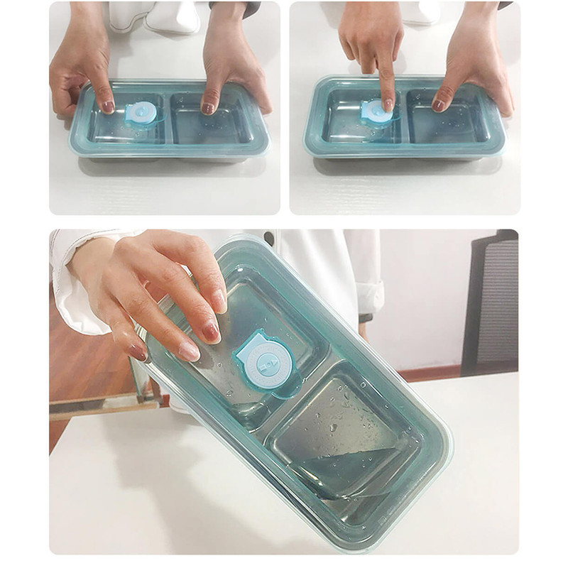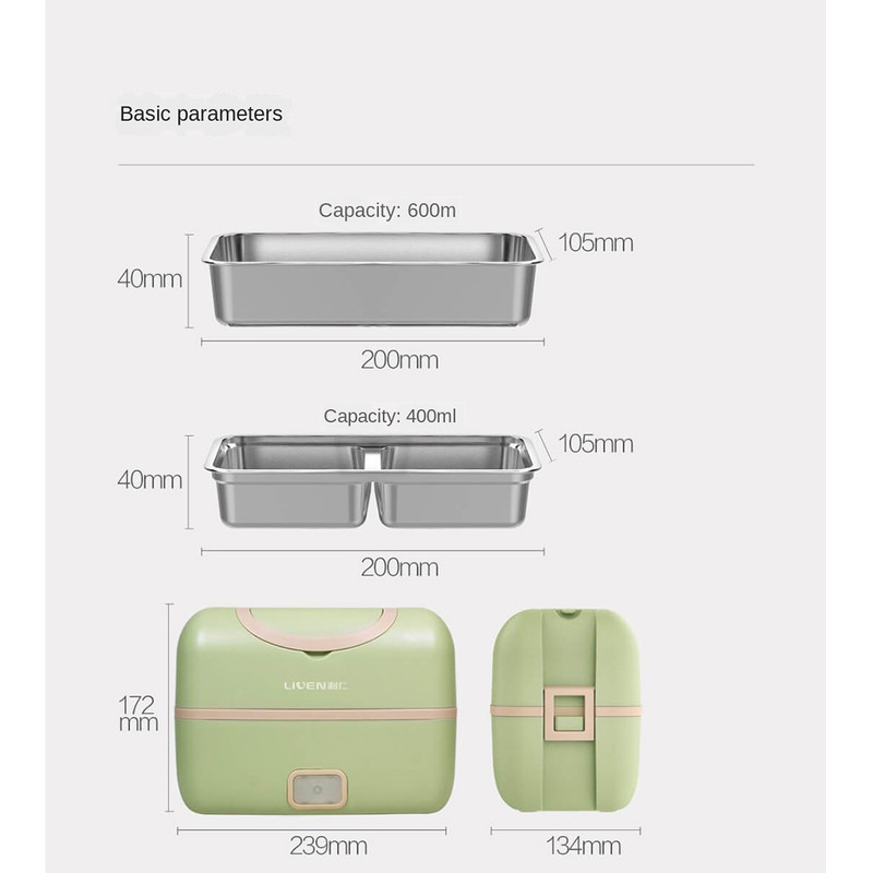 یکی از ظروف غذا به 2 قسمت تقسیم می شود که به شما امکان جداسازی غذاهای مختلف را می دهد. لازم نیست غذاهای مختلف را با هم مخلوط کنید، بلکه می توانید آنها را جداگانه گرم کنید. یک سلکتور چرخشی کوچک روی هر دو درب تعبیه شده است که با آن می توانید زمان قرار دادن غذا در جعبه ناهار را انتخاب کنید.